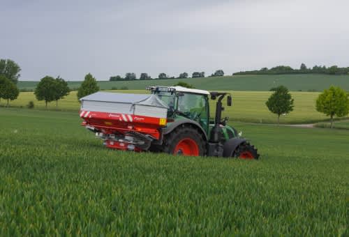 Kverneland Exacta HL tökéletes műtrágyaszóró a nagy kapacitás és termelékenység érdekében, 54 méteres szórási szélességével és 3900 literes tartályméretével.